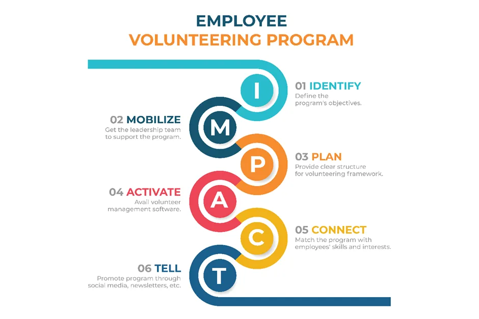 HR can attract and retain top talent through strategic action. They can start with an outline of the main steps to launch and sustain an employee volunteering program. It includes matching employees with the right volunteering opportunities. Next is measuring the program’s success and IMPACT (Identify clear objectives, Mobilize leadership backing, Plan a structured framework, Activate volunteer management tools, Connect employees’ skills with the right opportunities, and Tell the world by promoting your program through social media and newsletters). These steps drive engagement and strengthen the company’s reputation.